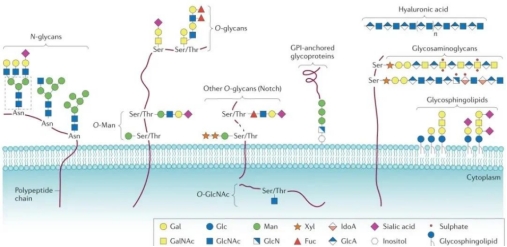 图:蛋白质糖基化修饰的类型与结构《蛋白质功能调节》